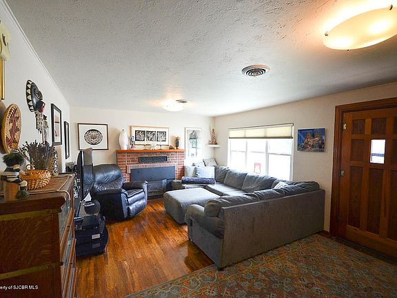 Beautiful, well cared for home on a large irrigated lot with mature landscaping in Aztec - just across the street from Cap Wells Park. Walk inside & appreciate the charm & character - original hard wood floors throughout, gas fireplace in the living room, built in storage, & new windows throughout. Spread out in the large open kitchen & dining area with island. Just past the kitchen, there is an additional living room that could be a used a nice den/office, art studio, family room or possible master bedroom. Next to the 2-car attached garage - you can enjoy planting all year long, in your very own Solarium. Just outside the solarium walk onto your very private, enclosed deck with hot tub hookup, and private yard space. The front yard has a lush green lawn, the lower level of the back yard is fully fenced with a tree swing and garden area. Relax in your hammock under the mature shade trees in the 3rd level backyard & another big fenced in garden. There is so much to see at this amazing piece of heaven in the heart of Aztec! Measurements are approximate - Buyers to verify.