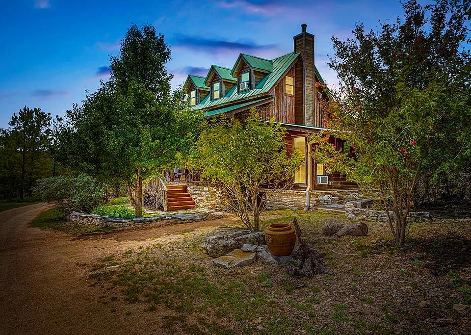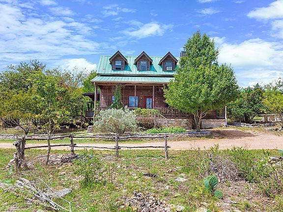 Heart & Star Ranch - this Hill Country retreat in the heart of the Alamo Springs Ranch community, at an elevation of 2016 feet boasts remarkable views on just over 25+/- acres. The 1344 sqft, 2 bedroom main home reflects the German heritage with gorgeous rock and cedar wood siding and a cabin-like feel with modern amenities. The home has a fabulous wide porch overlooking the countryside. 3 guest units each have rusting wood interior, wood and/or tile flooring. Raised garden beds, green house, 500 ft water well, fencing, and numerous fruit trees.