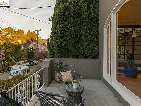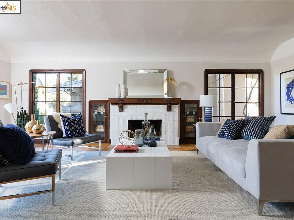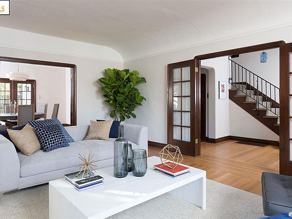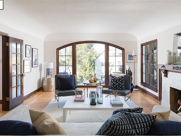 Sophisticated English Traditional Home rich in architectural details with natural wood trim and satin hardwood floors. Many casement windows bring bright light to the home. Spacious rooms with built-in cabinetry, fireplace, separate den, and hilltop views from the upstairs master bedroom. Updated kitchen and baths with laundry. French doors open to a large deck, patio, sunny garden, and all-level yard. Interior access from the garage with Tesla charging station. Desirable Crocker Highlands cul-de-sac. Glenview shopping just steps away with easy freeway access. Absolutely charming!