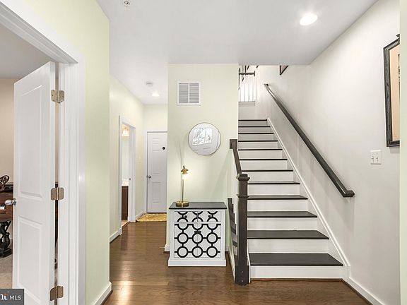 Better than new, this 4 yr old end unit Dan Ryan home is move-in ready for you. Newly installed engineered hardwood throughout the main foyer, and upper level 1 as well as the primary bedroom, 10' ceilings, recessed lighting, ceiling fans, pendant lights over the kitchen island, deluxe stainless steel appliances, double sink in the kitchen, electric fireplace in living room, 3 full bathrooms, 1 half bath, composite deck, built-in garage and cute patio in front add to the charm and value packed into this townhome. Tuscarora Creek has its own pool and clubhouse that IS NOT accessible to the other communities around it. Sited on a large end-unit lot, facing woods, this home has it all!