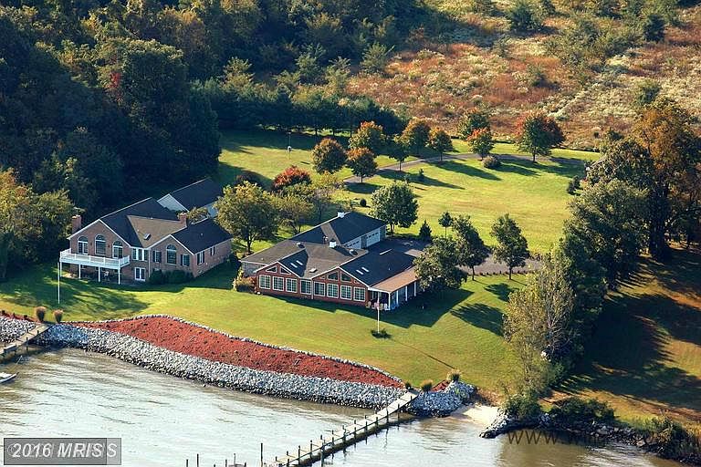 ONE OF A KIND! 3 Bedrm 3 full & 2 half bath brick & stone Rancher on 2 acres w/ 200' of waterfront w/sandy beach, 200' pier w/water, elec & cable & 3 lifts. Home has full finished bsmt w/Summer kitchen. Can be in-law Quarters! NO flood ins required! This Rancher sits 20' above high tide!! Gated driveway, gourmet kit w/granite, stainless appl, wood floors, 4 car att garage + 8 car detched garages.
