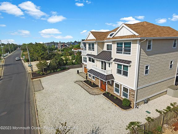 The lower floor of the home includes a den recreation room that leads out to a beautiful backyard with a patio, seating, and hot tub. A private gate also opens to a walkway that leads directly to Ocean Avenue, providing easy access to nearby beaches in Mantoloking. With a two-car garage and plenty of additional parking for guests, this home truly has it all.