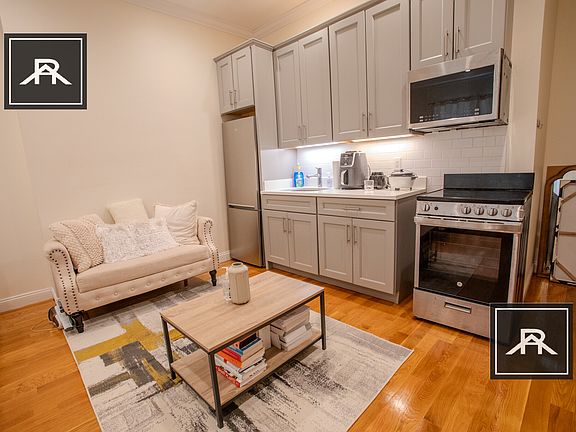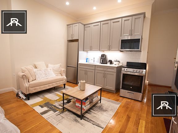 UNDER RENOVATION!! PICS OF UNIT BELOW!! studio will mirror the stylish and functional design of the unit directly below, offering a beautifully modern space with a full-sized kitchen featuring stainless steel appliances, custom gray cabinetry, and a sleek subway tile backsplash with under-cabinet lighting. The open layout is enhanced by warm hardwood floors and high ceilings, creating an inviting and versatile living area. The renovation will include clean, updated finishes throughout, including a fully redone bathroom with contemporary tile and fixtures.