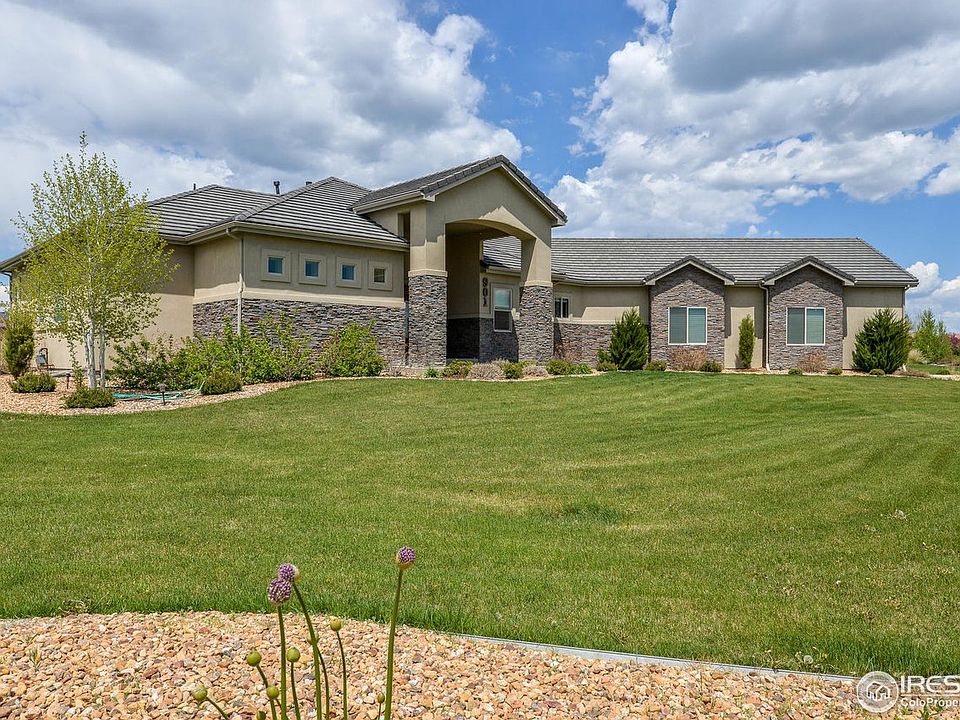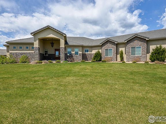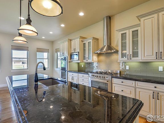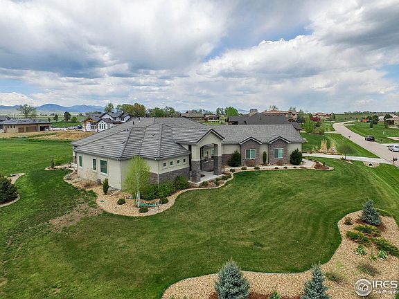 Gorgeous, sprawling ranch home on almost 1 acre with stunning mountain views from the covered back porch! This incredible property is just west of Berthoud. Enjoy the park, pond, open space & walking trails. For the chef, the cooks kitchen will delight with gas stove, 3 ovens, wine fridge, SS and huge granite island all open to the dining, living room and porch for entertaining. The oversized 4-car garage is perfect for the hobbyist or Car Guy! Tons of SF to build your dream basement! Must see!