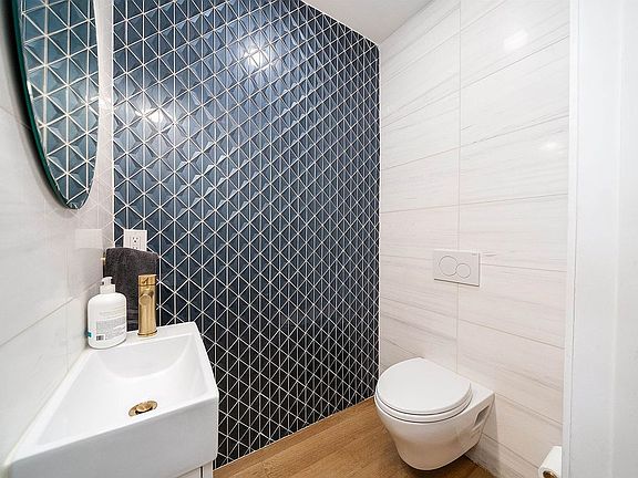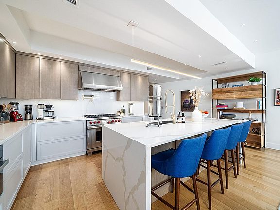 Truly a one of a kind home. Three years young, 3 bedroom, 2 1/2 bathroom in the Raphael on the corner of a highly desirable block of upper Bloomfield St. with comfortable southwest afternoon sun. Unique flexible layout of 1736 sq ft. with attention to exquisite details ranging from designer contemporary lighting and open chefs kitchen to luxurious baths with radiant heated floors all adding to the overall quiet sanctuary of the unit. Your kitchen starts with a multitude of custom cabinets topped with Taj Quartzite waterfall countertops and backsplash and is anchored by a commercial six burner Wolf range with hood and in-wall pot filler faucet, near silent Miele dishwasher and under counter speed oven and cavernous Sub Zero integrated refrigerator/freezer drawers plus wine storage. Two primary king suites with blackout blinds, floor to ceiling bathroom tiles from AKDO, and your choice of a Perlato soaking tub or an open, partial glass enclosed oversized shower. And don't miss the third bedroom/home office with huge storage space and window cubbies that just create a fun space for your own customized area that best suits your needs. Half bath, spacious hall closet, full sized washer and dryer, on demand hot water, and 6 inch wide white oak plank flooring seamlessly add to the environment and functionality. A short walk to everything uptown Hoboken has to offer and multiple easy routes into NYC. Come take a look. Copyright Hudson County MLS. All rights reserved. Information is deemed reliable but not guaranteed.