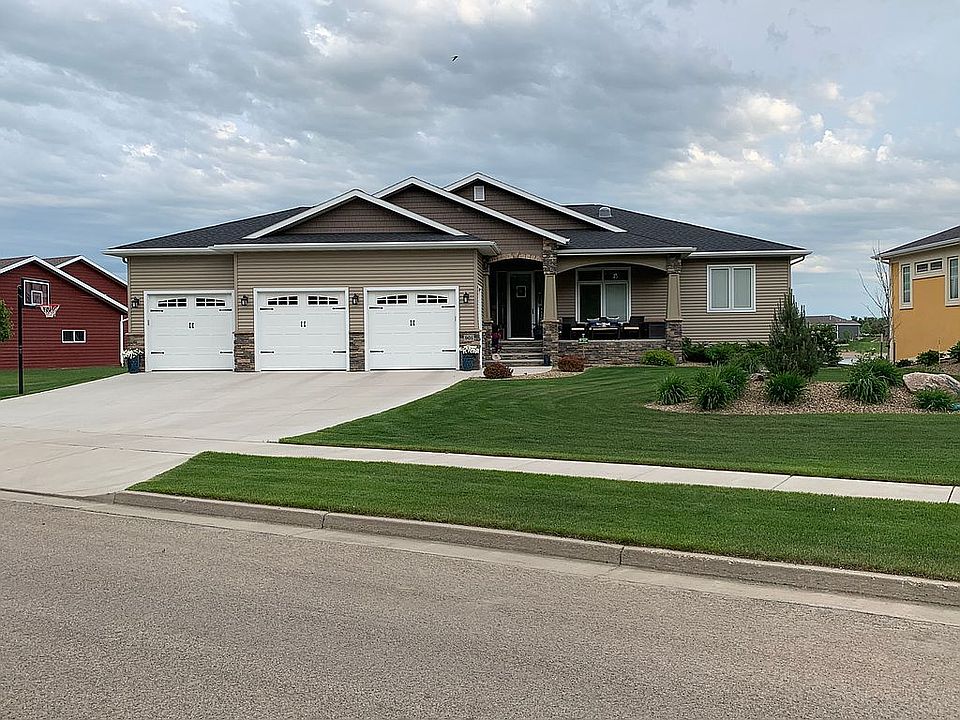 Check out your NEW DREAM HOME on the WATER at Southbay !! The WATER VIEWS are fabulous with all the large windows. This RANCH STYLE home will impress you w/ lots of upgrades. This very stylish home has a very functional open floor plan with plenty of room for all the family & guests ! The exterior will grab your attention with maintenance free siding & stone accents plus a large front concrete porch. The Pella windows throughout have built-in blinds. Lots of quality and character went into the design and build of this home. The interior says ''WOW'' when you enter with lots of windows capturing the great WATER VIEWS ! The new modern colors are very inviting. Notice the tall ceilings, barrel ceiling, cathedral ceilings and tray ceilings with rope lighting on the main level with custom hand textured designs and 8' tall MAPLE doors. There are 3 bedrooms on the main level. The Master bedroom suite has 2 separate vanities with quartz countertops, heated tile floors, jacuzzi tub, custom tile shower, and a large walkin closet. Enjoy the beautiful hardwood laminate flooring in the living room, dining area and kitchen. The living room has a gas fireplace with stone.... Great space for arranging all kinds of furniture. The dining area has a 3-pane patio door with access to a maintenance free COVERED DECK w/ built-in speakers. Walk down to the WATER on the cement walkway to the firepit area. Also notice the concrete patio for grilling. Enjoy fishing in the spring fed bay. The kitchen has MAPLE CABINETS, quartz countertops, beautitul tile backsplash and a 4x6' center island, large walk-in pantry plus a desk area. The Stainless Steel appliances are included (gas stove). The laundry room has extra cabinets located close to the garage for convenience. The garage is heated w/ hot/cold water & floor drains. The lower level is finished including a family room w/ wet bar, fridge & surround sound, big rec room, 2 large bedrooms w/ a Jack & Jill bathroom, lots of storage