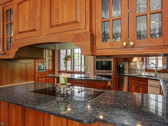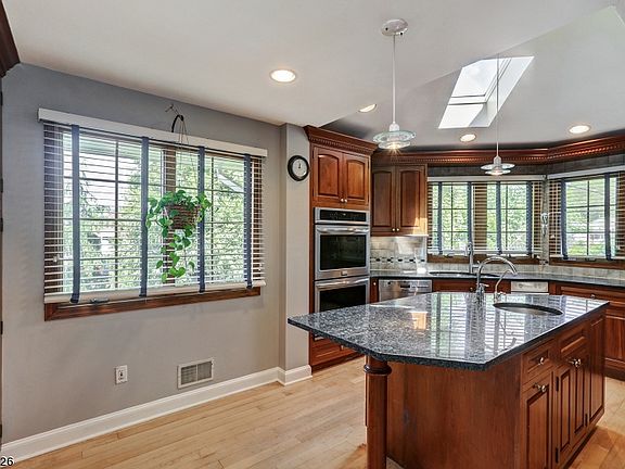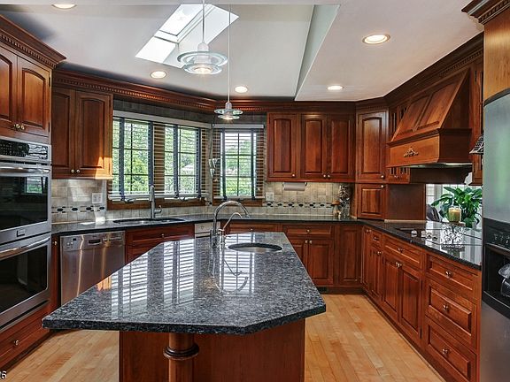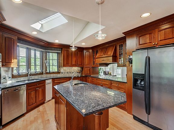 Spacious colonial with large Kitchen featuring lots of custom cabinets, granite counter tops, center island and double ovens. Main level has an open floor plan, hardwood floors, crown molding, recessed lighting and abounds with natural light! Oversized rooms - Dining Room leads to an Outside Deck and Paver Patio. First floor Laundry Room/Mud Room and separate Office/Den! 2nd Floor has a Master BR en suite with separate shower as well as 4 other Bedrooms! Plus Rec Room with Dry Bar in Basement to enjoy. LESS THAN ONE MILE TO Downtown Shopping, Restaurants, Movie Theater and Train!
