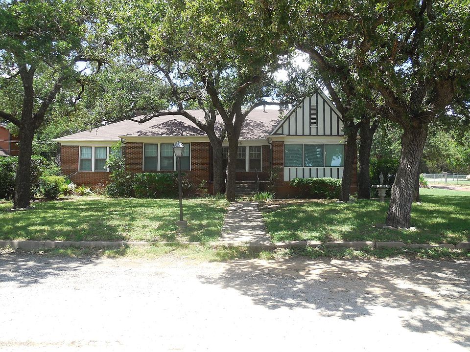 Fantastic tree covered corner lot on a brick street with a hard-to-find larger brick home with a guest home. The home has 3 bedrooms, 2 baths, and a study with built-in bookshelves that has been used as a fourth bedroom. There is a large formal living room with a fireplace. The kitchen is open concept into dining area and 2nd living area. The kitchen has granite counters and tile flooring. The garden room is heated and cooled with a skylight, and large windows. The hallway has 3 bedrooms, and a bath at each end of the hallway. There is a separate guest house with approximately 864 square feet of living space. It has a fireplace with an electric insert, hot tub, kitchen area, bathroom, and a large bedroom loft. The backyard has a wood privacy fence behind the main home with a large concrete patio area and a grill. There are 3 storage closets on the exterior of the attached 2 car garage that has space for a second refrigerator and storage shelves. Home has had a lot of updating.