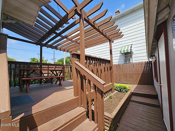 Welcome to this charming 3-4bedroom, 1 bathroom home nestled in the heart of Hollidaysburg Boro.  As you enter, you're greeted by a quaint enclosed front porch, perfect for enjoying your morning coffee or could use as a possible office.  The small yard is great for maintenance and a pleasant outdoor space for relaxation including a pergola.  A detached one-car garage and off-street parking ensure convenience for vehicles and guests.  Located in the sought-after Hollidaysburg School District, this home offers both comfort and practicality. Call to schedule your showing. (Preapproved buyers only. Buyers to confirm taxes, sq footage, and lot size.)