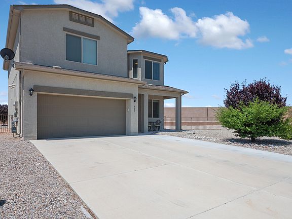 Welcome to this impeccably preserved Rio Rancho home situated in a quiet and peaceful cul-de-sac. This splendid property offers a generous 2428 square feet of living space, 4 bedrooms, and 3 bathrooms. With a free-flowing floor plan, it provides spacious, light-filled interiors that are perfect for a growing family or entertaining guests. Constructed to Silver Build standards, this home is exceptionally energy-efficient, promoting sustainable living without sacrificing comfort. Plus, a built-in pest control system is included. Step into this flawless home, ready for you to move in and make it your own! The sizable landscaped backyard with side yard access provides ample room for various activities. Enjoy peaceful evenings in the backyard with no homes behind the property.