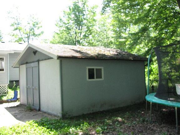 3 bedroom Ranch home with a large fenced back yard , two storage sheds and a detached 1 car garage . Galley style kitchen has lots of cabinets and counter space , master bedroom has a walk in closet and the large living room has a pellet stove .