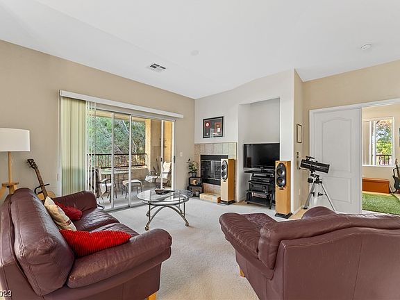 Immaculate 2 bedrooms and 1.5 baths condo in Summerlin with amazing mountain views, near Summerlin Hospital. Bright and warm living room and dining room combo with fireplace and mountain view, kitchen with breakfast bar and pantry. Huge Primary room with walk-in closet, bathroom with shower/tub combo. 1 finished detached garage, light and fixture, and epoxy flooring. Patio is quiet and with mountain view, great place to relax and have a morning coffee.