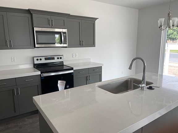 Be the first to live in a beautiful new townhome and make it your own! Spring Leaf development by Flagship is one of the best locations in American Fork with easy access to I-15, city park next door, hospital right up the road and mountain views. End unit gives you extra light and space. To make it easy to move-in, you have all new high-end appliances, quartz counters, washer, dryer, wall mounted big screen TV, window blinds and even the two-car garage welcomes you with an epoxy floor and extra storage. This townhome stands out with the vaulted ceilings and does not have the crowded feel of so many townhomes where you can barely squeeze into the garage. The basement will be finished during the first 4 months of the lease and will offer a full suite - bedroom, office, bathroom, storage - of living space for family or guest. Walk through to appreciate. Owner pays HOA fee. Occupants pay utilities. Last month rent and deposit of $1000 due at signing. No smoking or pets please. Credit check required with 650+ preferred. Schedule a walk thru beginning Saturday July 17th and available for rent July 27.