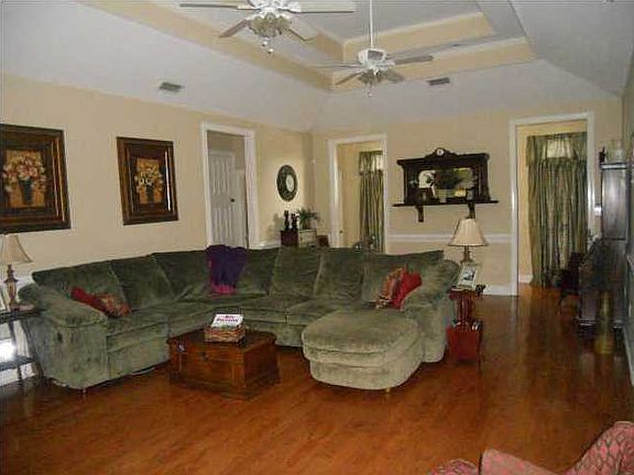 DRASTICALLY REDUCED AND SELLER SAYS SELL!! FROM YOUR ENTRANCE INTO THIS BEAUTIFUL HOME by the way of its unique horizontal foyer allowing you to step into the spacious great room from the left or right, you will be wowed! Look up to see the great room's beautiful double trey ceiling with absolutely gorgeous twin ceiling fans. Above the fireplace you will find a neat space for T.V. and cabinetry with glass doors for displaying your collectibles. There are doors on each side of the fireplace that allow for access onto a huge covered patio and open patio with a concrete grill pad for outdoor cooking. Plush, green turf is like soft carpeting, and the privacy fenced backyard offers a safe area for little ones and/or pets. The very spacious kitchen and dining area make mealtimes so enjoyable with tons on custom cabinetry and miles of countertop space including an island with vegetable sink and breakfast bar. Glass-front cabinetry allow for displaying your special china. A split bedroom plan nestles the master bedroom in the back corner of the home. This nice-sized master suite with tasteful turtle-back ceiling is complete with a gorgeous bath with garden tub, a double marble vanity, a linen closet, commode room, and his and her walk-in closets. A real plus in this home is its over-sized utility room. At 21 X 6 it is just off the kitchen and master bedroom. Located in the front of the home is an office/study with built-in cabinetry. This room offers great 4th bedroom potential! The hall bath also boast a double marble vanity. The floors throughout are beautiful ceramic tile and hardwood. A single 25 X 19 detached garage/workshop is great for the handy person or hobby person. Attached to one side of the detached garage/workshop is a boat cover. The well-manicured landscaping enhances the architectural features of the home including the pretty decorative coins. **Hanging mantel in living room is family heirloom and is reserved by seller. (Uploaded Thursday)