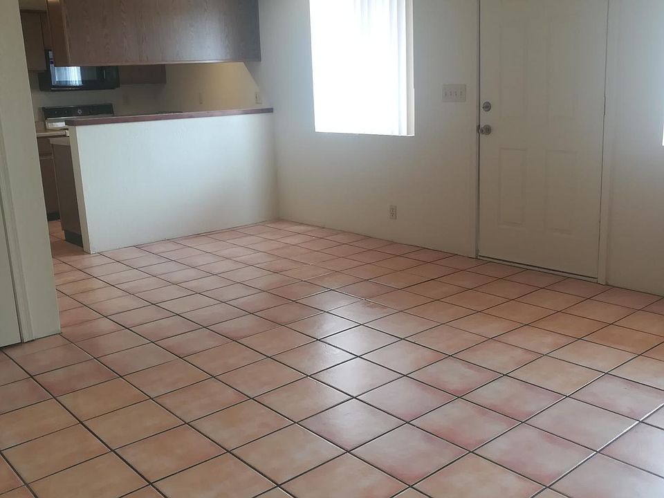 Cute 2 bed 1 bath, cathedral ceilings, skylights. Tile throughout, carpet in the bedrooms. Evap cooling. Laundry hook ups. We pay water, trash. Tenant pays gas and electric. 1 yr. lease, then month to month
