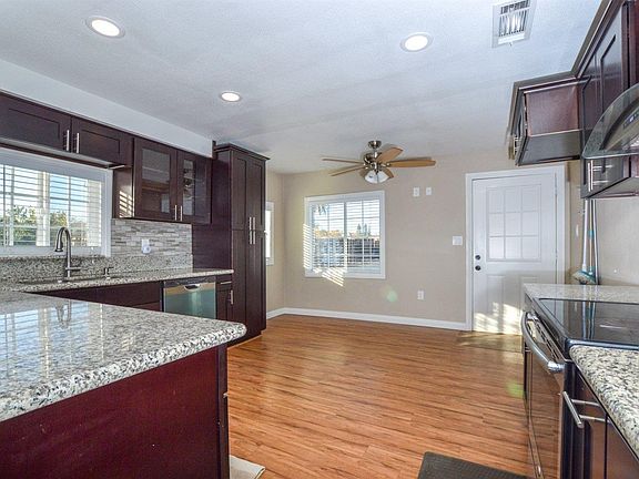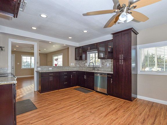 Completely remodeled bungalow inside with granite counters, stainless steel appliances, carpet, and laminate flooring, granite counters in bathroom, newer HVAC on a large corner lot close to area commerce.