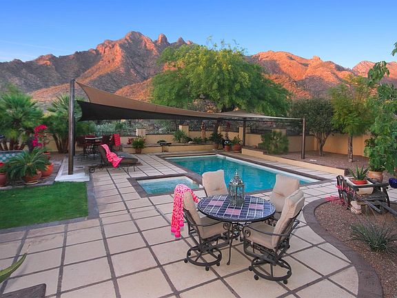 For more information on this property, contact the Listing Agent, Szach Team at (520) 548-5646 or Team@BestTucsonHomes.com. Experience the essence & beauty of the Sonoran Desert. Situated in the shadow of the Catalinas on 6+ acres capturing majestic views. Private gate & winding paver lined drive lead to breathtaking La Flor Del Desierto(Flower Of The Desert) Tranquility, luxury & sophisticated charm. Architectural & authentic masterpiece. Quality & integrity w/masonry construction, hand carved cantera, hand carved beams, custom doors & imported cabinetry, concrete & wood floors. Grand entrance, impressive kitchen w/massive block island, master w/private office. An effortless transition from in to the unrivaled outdoor spaces lush w/courtyards, extensive covered patios, fountains, pool/spa/shade structure. Space for all w/3BR guest house + studio apartment. $25K CREDIT AT CLOSING TO ZOCALO FINE FURNISHING!