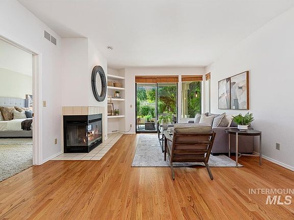 Nestled in coveted Heron Cove at River Run, this rare, ground level end unit is steps from the Greenbelt, Boise River and heated community pool! Pride of ownership abounds in the thoughtfully designed floorplan situated for maximum privacy and carefree enjoyment of East Boise's best amenities just minutes from your front door. Step into the bright and open living area complemented by ample natural light and a warm, gas fireplace providing the perfect ambiance for crisp, Boise evenings. Spacious dining room flows effortlessly to the striking, modern kitchen featuring chic, white cabinetry, granite counters and stainless-steel appliances - the ideal layout for seamless entertaining and everyday living. Generous master retreat boasts ensuite, walk-in closet and direct access to the private, covered patio. Enjoy the lock and leave lifestyle with all exterior maintenance, landscaping and snow removal provided by the HOA!