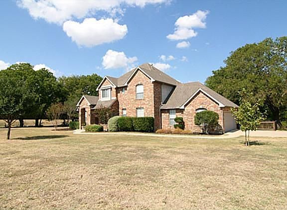 Great house on 2.74 Acres in Mill Creek Estates! Excellent floorplan features grand entry; study; awesome island kitchen with gas cooktop; breakfast room with view; gorgeous open family room with wood burning fireplace and plank hardwood floors over looking tree lined creek; master suite has walk in closet, jetted tub and view of backyard area; guest bed and bath down; 2 very nice sized bedrooms up with Jack-n-Jill bath; oversized gameroom with wall of built-ins; covered patio with stamped concrete and 2 fans; firepit; small fenced area for pets; 20 x 10 storage shed (TBV); 2 car swing garage with extended driveway . Upstairs carpet replaced 09-2011!Brokered And Advertised By: Re/Max Dallas SuburbsListing Agent: Keith Dobbs