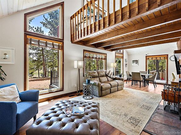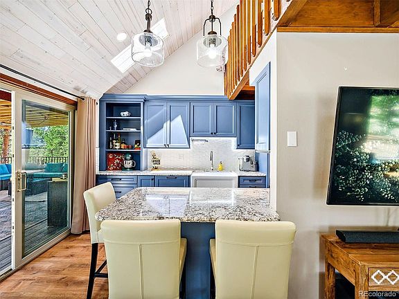 Welcome to this peaceful mountain retreat with incredible views! Fully remodeled in 2019, this darling A-frame sits on four useable acres of gently rolling hills with plenty of trees and privacy. You’ll love the open floor plan featuring a custom kitchen with GE Café Series appliances, granite countertops, tile backsplash and island; dining area and living room with wood burning stove. Kitchen features double gas oven, soft-close doors and pull-out shelves. The main level is all LVP flooring and also includes a large bedroom with sliding glass doors to the wrap around deck, a ¾ bath with custom tile shower, laundry, and sliding glass doors to the huge new covered deck, which lets you enjoy the outside all year long. A perfect hangout for the nature lover with plenty of large windows that bring the outside in. Sip your coffee while watching the wild life from the deck or the hot tub. Upstairs you’ll find the second bedroom with full bath, and a loft with built-ins and balcony. The property is fully fenced and includes a remote-controlled gate and two storage sheds. The area offers world-class fly fishing, hiking and exploring. Could also be a great vacation rental. Less than an hour from Colorado Springs.