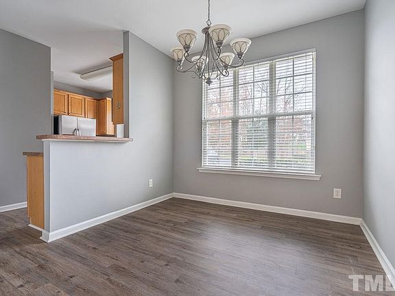 Immaculate & move in ready end unti townhome in prime Morrisville location. Hardwood style floors throughout 1st floor. Fresh paint. Nest thermostat. Spacious family room features cathedral ceiling, gas log fp & custom stone wall. Kitchen offers new s/s appliances (2018). Formal dining room. 1st floor master suite with garden tub/shower & walk in closet. Updated water heater. Oversized patio offers great wooded views. 2 parking spaces + guest space right in front of home. Join Shiloh Grove pool next door.