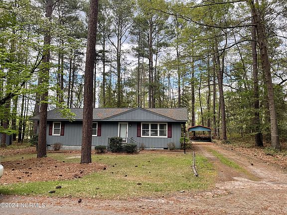 A charming Ranch home with 3 bedrooms, 2 full baths located in the Bethesda Farm area of Aberdeen, NC. Enjoy nature on this 0.493 acre lot. This home is just minutes away from downtown and nearby Southern Pines. Open floorplan with a Kitchen/Living Room combo. Property includes a metal carport, spacious storage unit and a Bunny Box. This home sits on Lot #1 of the parent property and is the only property for sale at this time. Showings can be booked through Showing Time. This is on a private street, outside of city limits.