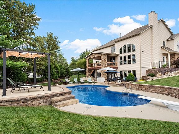 Discover luxury living in Columbia's Pioneer Ridge with this stunning 5-bed, 3.5-bath, atrium style home. Spanning over 4952 sq ft, featuring 2-story foyer, large kitchen with a massive two-tier island, ample cabinet space, and granite counters. The kitchen opens to the two-story living room with a wall of windows and stone gas fireplace. Enjoy a composite covered deck, separate dining room, office, main floor laundry, and an oversized 3-car garage with 11 ft ceilings. The upstairs primary suite boasts a newly renovated bath with a freestanding soaker tub, walk-in shower with dual heads, double vanity, and walk-in closet. The second floor also includes a bedroom with a walk-in closet, a full bath, Jack & Jill bedrooms sharing a bonus room with closets. The backyard oasis features a stunning in-ground pool with built-in umbrellas, waterfall fountains, pergola, and hot tub. Newly finished basement with large main area, bedroom, a bathroom with heated floors. -Full feature list available-