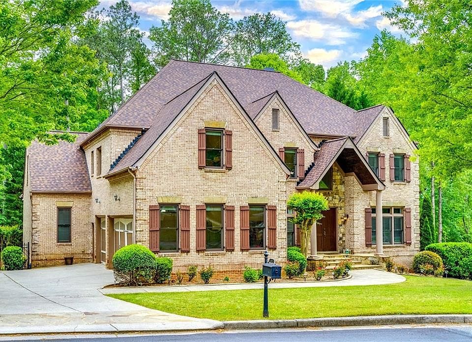 Elegance abounds in this stately 4-sides brick executive manor in the excellent Walton HS district. Located in an exclusive six-estate lot cul-de-sac development, this luxury home features high-end finishes throughout including a grand two-story Foyer, formal Library/Office with elegant glass-paned French Doors, formal coffered-ceiling Dining Room with seating for 12+, main level ensuite bedroom, impressive coffered-ceiling Family Room with fireplace and curved window wall providing plenty of natural light and a pleasing view to the wooded back yard, bullnose corners and stacked crown molding, gourmet eat-in Kitchen with Breakfast Bar, soft-close cherry cabinets, granite counters, stainless appliances including gas-cooktop with commercial-grade vent hood and new double oven with warming drawer, and huge walk-in pantry with built-in shelving! The Kitchen is open to both the Family Room as well as the vaulted Keeping Room with masonry fireplace and built-in bookshelves. Main level Laundry Room with built-in cabinets. Over-sized upper level Master Suite overlooks tree-lined back yard via bay windows; ensuite spa bath opens to "must see" walk-in closet, Master Suite also includes Sitting/Sewing/Craft Room with secondary closet. Upper level also provides three secondary bedrooms with ensuite and Jack-and-Jill baths, and a spacious open Media/Game Room for parents and kids alike! New roof installed in '22! The 2200sf unfinished basement is stubbed for bath and ready for custom finishing. NOTE: If you have active/sports-loving children, they will be in heaven here! This home backs up to the access road to Fuller's Park, which may be Cobb County's "best-kept secret" - and is also a short "trail walk" to East Cobb Park!