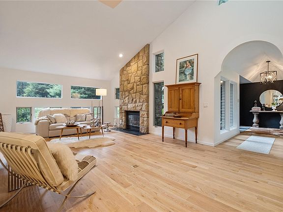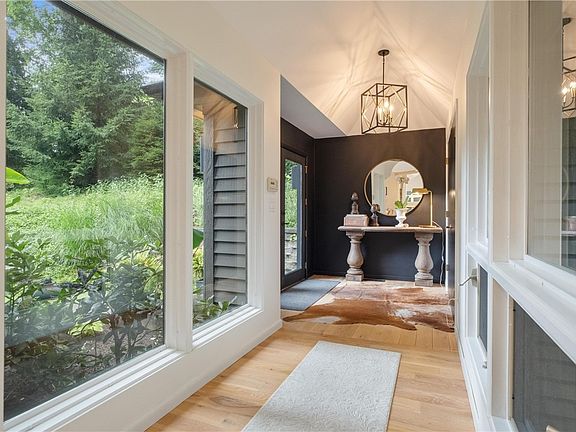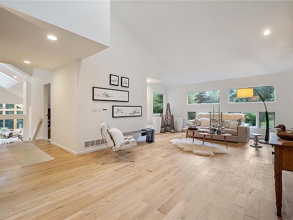 The epitome of luxury and tranquility in this stunning multi-level contemporary home. This 4BR 4.5 Bath home is nestled on a private 1.39 acre lot in Marshall Woods. Its open and seamless floorplan allows for a complete indoor-outdoor experience. Breathtaking views from your wrap around deck with clear panels allowing for an unobstructed view of nature. As soon as you step into the grand living space you are enveloped in endless natural light through your vaulted ceilings and all glass atrium making it the perfect place to unwind or entertain. Two primary suites are offered allowing great versatility. The warmth of the white oak flooring and the whole house Bang & Olufsen sound system offer a retreat like feel without ever leaving your home. The eat in kitchen has a double-sided FP and gorgeous granite throughout. Enjoy family gatherings in your finished lower level. This home offers the perfect blend of luxury, privacy and natural beauty throughout.