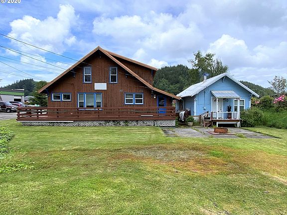 Great location at entrance to Reedsport at intersection of Hwy 101 and 38! Tons of potential with this 2 story building with commercial, and apartment on main floor. 2nd floor apartment in process of remodel. Income from cute 612 sq ft cottage is $1100/mo. Live/work within walking distance of Umpqua River, parks and restaurants. New electrical service to buildings and new panel and wiring upstairs. .22 acre