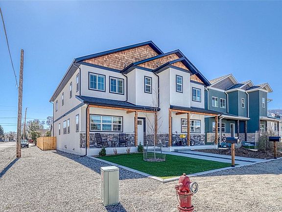 Stylish and modern 4-bedroom, 3-bathroom townhome sits on a corner lot, offering mountain views, exceptional location and move-in ready convenience. Light, open and inviting main floor features a spacious living area with mountain views, high ceilings, custom finishes and thoughtful touches throughout. Kitchen has upgraded stainless steel appliances, quartz countertops, custom shelving, a large pantry and a breakfast bar. The main floor includes a 3/4 bath, plus a private bedroom or office space with glass doors that step out onto the back deck. Primary suite offers a generous walk-in closet and en-suite bathroom featuring double vanity and a large custom tiled shower with a glass door. The upper level also includes two additional bedrooms, a full bathroom and a convenient laundry area. Outside, enjoy relaxing and entertaining on the covered front porch, spacious back deck and paver patio. The landscaping includes low-maintenance turf in the front and back yards, irrigation, large planter boxes and a spacious fenced backyard. There is a detached garage, an extra off-street parking space and parking along both the front and side of the corner lot. Walkable location convenient to downtown, schools and the bike path. One of the listing agents is also Seller.