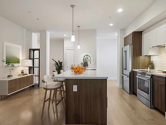 Highlight: water & trash are included in the rent. Tenants only pay for electricity. Furniture in photos are for illustration. The condo is unfurnished. This amazing two bedroom, two bathroom is the largest unit in the building with private access to the central courtyard (ideal for bikers, family with kids or pets). There is a den that can be used as a work-from-home office. The unit is brand-new and well-maintained. Because of its location in the building, it's never too hot or too cold. No neighbor downstairs and respectful neighbors upstairs. The home features wide plank wood flooring, quartz counters, Bosch appliances, and in-unit laundry, blackout curtains for bedrooms, gravity bike rack for two bikes & key-free smart-lock. The HOA amenities feature a co-working lounge, a secure parking garage (1 spot), bike storage, and a central courtyard complete with a BBQ and cozy seating. The community has weekly events to connect with other residents. Vibrant neighborhood of Old Oakland with 98 Walk Score, 89 Bike Score, 87 Transit Score. * 2 minutes walk to Old Oakland Farmers' Market every Friday, Swan Market, many restaurants & bars * 5 minutes walk to The Club at City Center gym, 12th St BART (2 stops from San Francisco downtown) * 7 minutes walk to Bright Future Early Learning Center for infant, toddler & preschool children Owner pays for water & trash. Tenant is responsible for electricity. Last month's rent due at signing. No smoking allowed. Up to 1 small pet permitted.