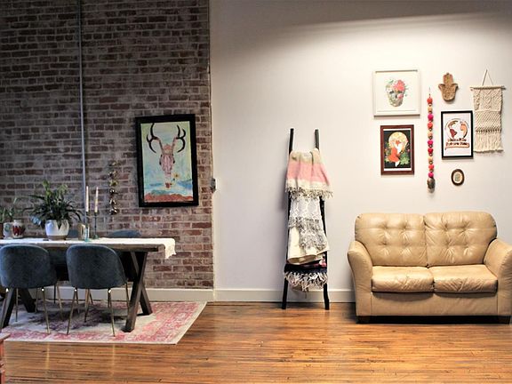 This charming loft offers a rare opportunity to live in Lynchburg's happening downtown historic district at an affordable price. Unique in concept with studios of local artisans and permanent residents residing together in this renovated 1898 building known as the Riverview Art Space Center. Located on the corner of 9th and Jefferson Street makes it an easy walk or bike ride to restaurants, festivals, biking trails and more. This unit is on the top floor giving the owner a spectacular view and a quiet condo. New energy efficient floor to ceiling windows, heat pump heating, exposed brick, hardwood floors, and a recently renovated bathroom makes this a nice mix of old and new. The kitchen is quaint and practical with electric outlets in place for expansion. Permanent shelving in the great room separates the bedroom for privacy. A coveted reserved parking space is available for an additional $40.00 a month.