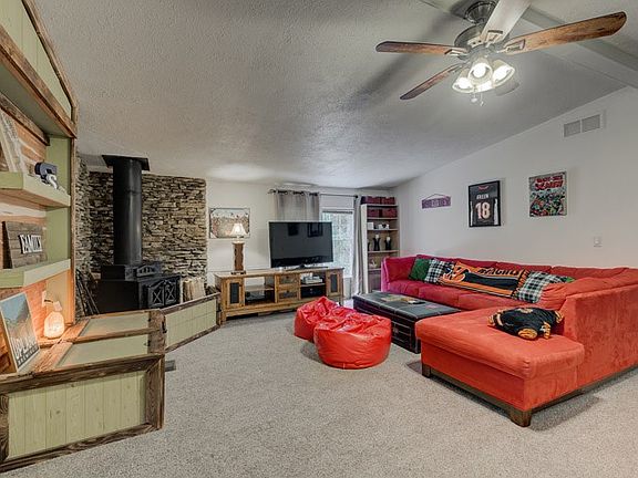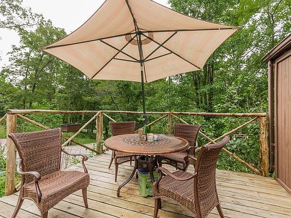 This remodeled home is completely private and features custom tile countertops, cedar wall, tile floors in bathrooms and a breakfast bar, whole house water filter, and a wood stove with stone surround! Area has been cleared for a large pole barn or garage. Just over ten acres of mostly wooded land make this the perfect getaway and a hunting paradise! Watch the deer and turkeys from your deck! Large outbuilding for storage.