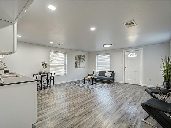 Super cute farm house feel home. If you are looking to be in the city with a country feel this is the one. Very large lot and patio area great for entertaining. Home has a very open floor plan with one area for living room, dining and kitchen. Primary bedroom has a private bath that has been updated. Two other large bedrooms with updated guest bath. Inside laundry area. Seller is a licensed realtor. Buyer to verify all info including schools. Street sign says JOB
