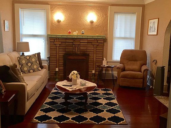Charming ,move in ready, 3BR/2 Bath brick home . Living room features beautiful hardwood floors , high ceilings with crown molding, and a brick FP. Large formal dining room also offers hardwood floors, high ceilings and crown molding. Hardwood flooring throughout home refinished less than 5 years ago. Kitchen has plenty of counter space and cabinets. Stove less than a year old . Nice size bedrooms. Floor to ceiling built in cabinets in center hallway for additional storage. Large front and side porches. Great sunroom, featuring built in bench seating , right off front porch for additional entertaining space . Electrical wiring and AC unit less than 5 years old. Partially fenced in yard with mature landscaping. New roof. Must see!