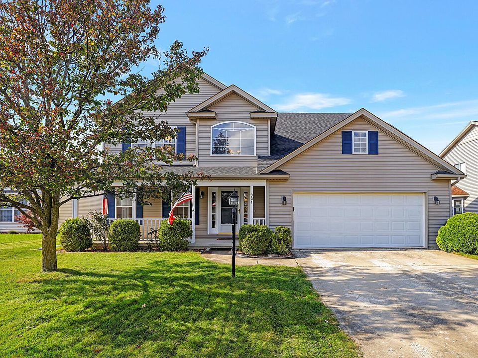 This beautiful four-bedroom home in Prairie Fields Subdivision offers a versatile layout and lends itself to celebrations, family holidays, and life-long memories with ones you love. The front porch is a wonderful place to sit in a rocking chair and read a book, enjoy a cup of coffee, or just watch the world go by. The straight-through 2-story foyer boasts hardwood floors and ushers your guests to the heart of the home featuring the spacious eat-in kitchen and the cozy living room anchored by a gas log fireplace. Upstairs, the master bedroom feels warm and cozy with neutral carpeting and boasts an attached full bath and walk-in closet. Three additional bedrooms and full bath complete the upper level. Take advantage of the additional living space in the basement featuring a spacious family/rec room and private office, the perfect space to work from home and/or study. You will love entertaining in the fully fenced backyard with patio. New roof & new HVAC! This home will not last long so schedule now to make this dream home your reality.