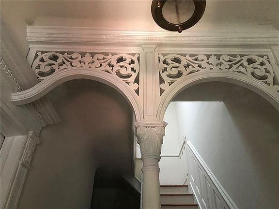 This is a quiet beauty. 2 fam. limestone, 5 bedrooms,3.5 baths throughout, plenty of original details, with a full cellar and large backyard. Ok, so the size of the back yard is 20x25 so the outdoor space is good and it can be accessed from the mud room and also from the cellar which is the full width and length of the house. The garden apartment showcases the living room, eat in kitchen, walk in pantry, 3/4 bath, there is a fireplace in the living room along with some much storage space, but the builtins are beautiful. In the hallway of the parlor floor, it has the original builtin for the hats and bench to sit and change your shoes or wait to be seen. Most of the doors are original and the integrity is quite good. The interior stairs are solid and original. The floors in those rooms just need to be re-stained. The arch way with the original lattice work makes it all worth it, as you're entering the formal dining room into the living/sitting room. Then when you finally reach the tenants apartment upstairs that was completely upgraded and the sun from the skylight washes over you, and you see all the space, well that's when you get the full understanding of the beauty of this gem