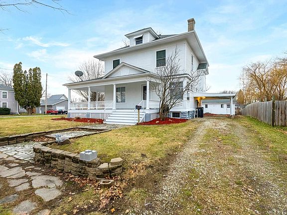 Don't miss this timeless 4-bedroom colonial revival home, circa 1902, located in Tipton, IA. Positioned on a large corner lot, the home features a front porch, wrapping around 2 sides, welcoming you with small-town charm. A 1-car garage, convenient carport, & 2 driveways provide ample options for your vehicle. Inside, a foyer with an original ornate wood-burning fireplace & an adjacent sitting room creates a cozy welcome. Throughout the home, you'll discover many original details, including patterned inlaid wood floors, timeless antique light fixtures, pocket doors & intricate woodwork. The large living room & equally spacious dining room lead you to the updated kitchen featuring a fresh facelift. A butler's pantry & updated 1/2 bath are right off the kitchen. Heading to the basement, you will pass a 2nd 1/2 bath and the exit to the carport. The detailed wood grand staircase will lead you to a spacious primary bedroom, 3 additional bedrooms, & an updated full bath featuring a clawfoot tub. The walk-up attic offers more storage space. New paint inside & out. Seller is a licensed Realtor in IA & IL.
