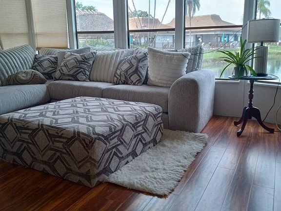 55+ community (One renter must be 55). 3 month minimum lease. Cheerful interior with many windows. Spectacular view on the pond, near the pool and clubhouse! Amazing sunsets! New flooring, master bath, guest bath, appliances, small patio, 2 newer lazy boys, and sectional couch with ottoman. Approximately 2-3 miles from Downtown Palmetto, Walmart Supercenter. Maybe 5 miles from Bradenton and Ellenton Outlet Mall. 12 miles to Anna Maria Island and many gorgeous beaches, restaurants, and tiki bars. We live in the same park:) Utilities are included in rent (within reason). First and last month's rent due at signing. Small one time pet fee and one time cleaning fee. Dogs up to 40lbs allowed. No smoking inside. One renter must be 55+ and all others 45+ per association rules. Minimum term to rent is 3 months, also per association rules. This house is available for the next 2 years. All association rules apply. Rent and utilities are based on 1-2 people. This may be adjusted for more people if necessary.