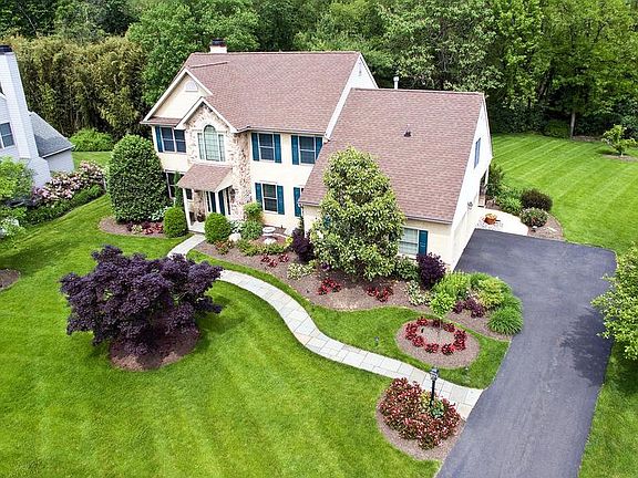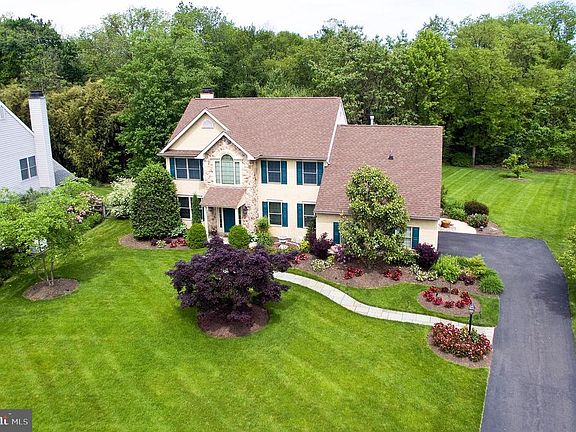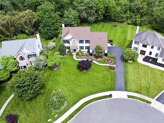 This Custom built home by ~Betz~ Builders is located on a picturesque cul-de-sac in the Abington neighborhood of Meadowbrook. It is loaded with luxurious features that include a Stone & Stucco front exterior, 2 story foyer, formal living & dining rooms, gourmet kitchen with granite tops, breakfast bar and nook, family room with gas fireplace, built in entertainment center and vaulted ceiling, master suite with sitting room (can be 4th bedroom) and 2 large walk in closets, master bath with whirlpool Tub, double vanity and separate tile shower. The basement is finished with built in surround sound, game area, separate office, storage, powder room and outside exit. Custom features include a central vacuum system, gleaming hardwood floors, elegant crown, wainscoting and wood moldings, recessed and under counter lighting, tile baths, window treatments & blinds, In wall speakers, first floor laundry room and a 2-car side entry garage. The exterior is gardener~s paradise and features built in lawn sprinklers, landscape lighting, paving stone patio, private rear yard backing to the Penny Pack Watershed protected area, a flagstone front entry walkway and side entry with covered porch. Recent improvements include a new high efficiency gas furnace and central air conditioning system. All of the furnishings are included in the sale if the buyer is agreeable. The house was designed as a 4 bedroom but the present owner had it customized for the master bedroom to utilize the 4th bedroom as a sitting room but it can easily be converted back to a 4 bedroom home.