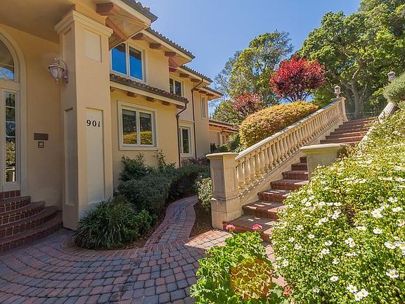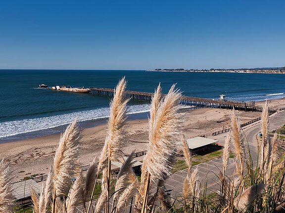 Tuscan inspired villa with sweeping ocean and valley views. Located in picturesque gated Moon Valley Ranch just minutes to Seascape Beach, golf & shopping . This thoughtfully designed home is sure to impress with 22 ft high ceilings & dramatic arched clerestory windows. Just completed decking renovations, stucco planters and exterior painting. Ground floor master suite with luxurious bath featuring a steam shower, marble tile, deep soaking tub and cedar lined walk in closet. Den/office with Renaissance style fireplace and interior exposed Spanish tiles. A second floor guest suite with full bath. Formal and informal dining .Heated tile bathroom floors, Two grand fireplaces, expansive kitchen with butlers pantry and wet bar. Up and downstairs laundry rooms.Two separate 2 car garages with upgraded shop grade electrical systems. Lushly landscaped drought tolerant gardens with beautiful mature palms & attractive brick paver courtyard entry, walks and driveways.