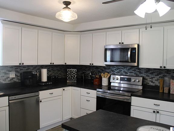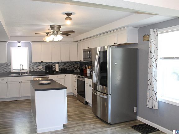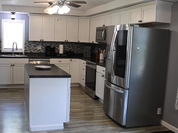This charming home features three bedrooms and two bathrooms, a well-maintained front yard and a cozy porch, perfect for relaxing and enjoying the outdoors. Upon entering the home, you step into a spacious and inviting living room adorned with large windows, allowing plenty of natural light. The room is large enough to accommodate a comfortable seating area, making it an ideal space for entertaining guests or spending quality time with family. The kitchen is well-equipped with modern appliances, sleek countertops, and ample cabinet space for all your culinary needs. The dining area is spacious and a perfect place to enjoy meals with family and friends. The primary bedroom with enough space to accommodate a king-size bed and additional furniture, and includes an en-suite bathroom. The two additional bedrooms are also well-sized. A second bathroom is located near the kitchen. Home also has a large backyard with a patio. The backyard can be fenced for privacy and has a detached garage.