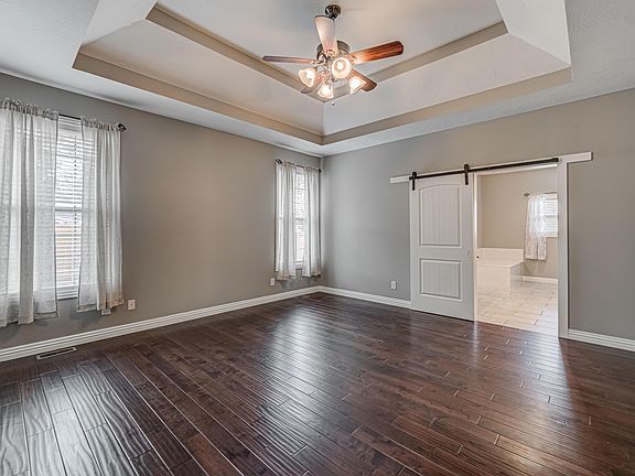 Fantastic like new 4 BR, 2 1/2 bath all brick home in Barrington Springs built in 2018. The entry way opens to the Living room, kitchen and dining room, all with large windows. And there's a corner gas fireplace, raised ceilings, and custom plantation shutters. The kitchen features a center island for additional seating, pantry, birch cabinets, granite countertops, stainless steel appliances and an abundance of cabinets. The private master suite with a bedroom and bath includes walk-in closets and soaker tub, walk-in shower and dual sinks. Hardwood floors in the main living areas and master bedroom, tile in all the baths and laundry room. The home has been constructed for handicap accessibility. There's even a stair lift in the garage. The covered back deck is just off the dining area, privacy fenced back yard, great landscaping with inground sprinkler system and oversized 3 car garage, equipped for your electric cars. Subdivision amenities include a great swimming pool and common area. What are you waiting for?
