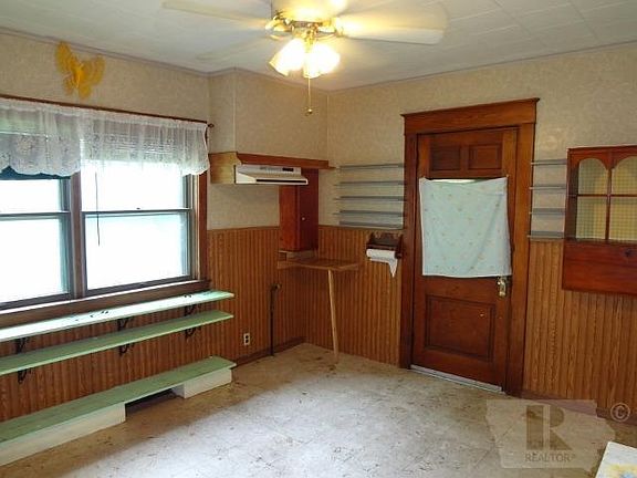 If you want to be close to the country and still be in town, this may be the home for you. The main floor of this 1 1/2 story home features 3 bedrooms, 1 1/2 bathrooms, nice size kitchen, large dining room, living room, 2 enclosed porches on the main level and then upstairs there is a large bedroom with two extra large closets. There is a covered patio on the east side of the house and an unfinished basement.