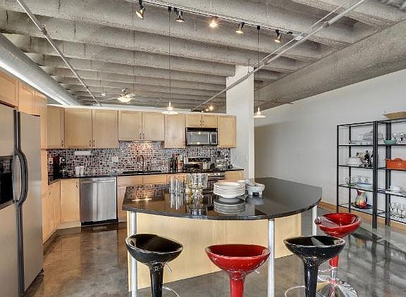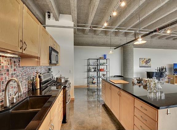 Breathtaking, dramatic corner unit with skyline views! Two walls of windows and a private balcony allow plenty of natural light! True loft with open floor plan, and exposed concrete ceilings and flooring. Huge highly updated kitchen!