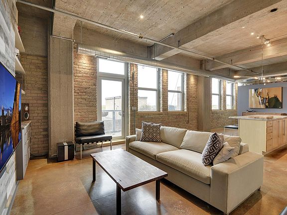 Wonderful top unit with sun filled natural light and Downtown Minneapolis Views. Updated gourmet Kitchen with granite counter tops and spa like bathroom ready to entertain in the desirable North Loop location. The unit is prewired for speakers, custom built media wall and shelves for additional storage. The balcony has electrical outlets and natural gas connection to grill and hangout to enjoy the views. You're just a walk away from world class dining, sports entertainment, live music and light rail. Take advantage of the newly remodeled gym and if you work from home you can also book a community conference room. There's even a restaurant on the first floor, CC McGee's.