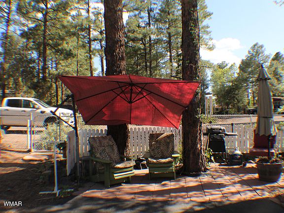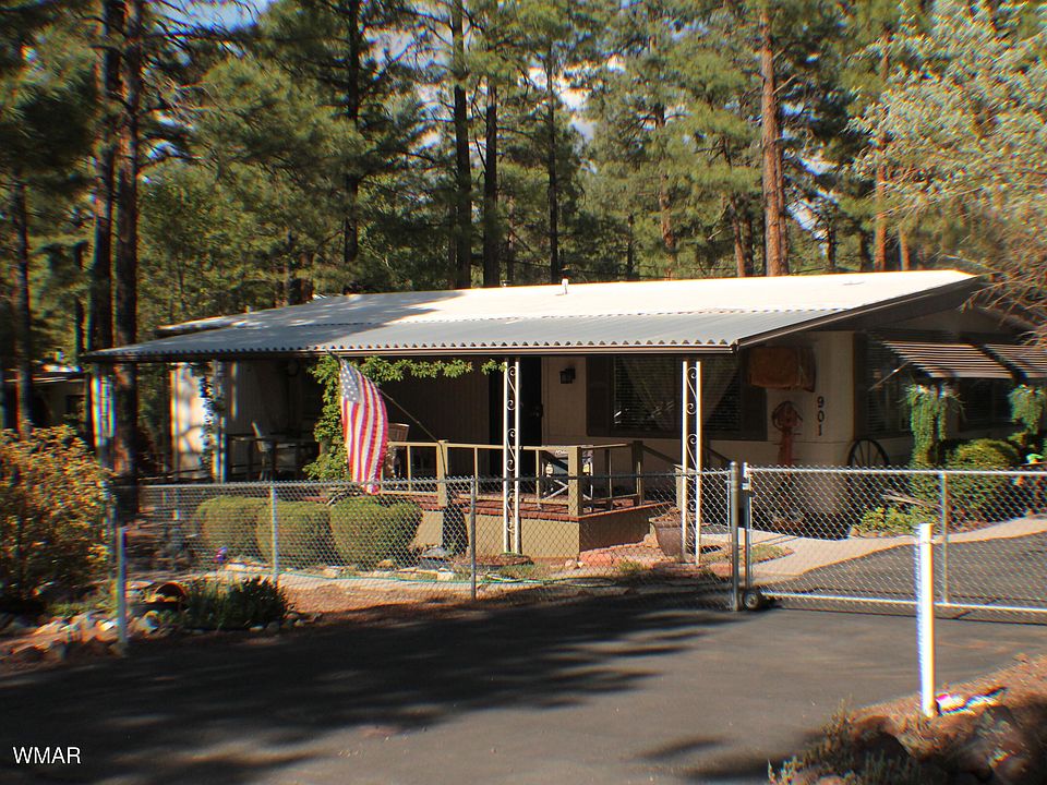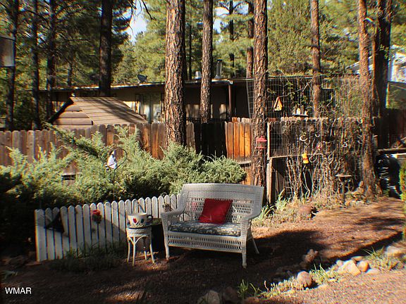 Clean, light and bright, mostly furnished 2 bedroom, 2 bath home in Fairway Park. In addition to the home there is an additional living area of the back of the home for sleeping, office, craft room, etc. The work shop is another addition and is a perfect handyman ''cave'' You will love to sit in several serene areas on the lot including the lovely front porch or patio/garden area. Fenced yard for the pets and a 1 car carport. Come relax in the Cool White Mountains of AZ.