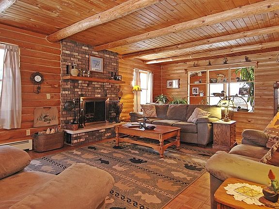 Tranquil, secluded setting with wooded views to pond on this 9+ acre Bull Valley home. The exceptionally well constructed log home exudes warmth from entry offering a spacious great room with large fireplace, a sunroom with heated floor and hot tub, great flow for entertaining or family living. There is a 45 X 3 barn and a 21 X 15 storage blading and the land offers woods, pasture, pond and adjacent to BVRC trails