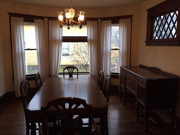 Beautiful character home near downtown Appleton. Meticulously cared for with side yard, perennial gardens, vegetable garden and ample parking. Three bedrooms up (or 2 with nice office/den), full bath upstairs and 1/2 bath on main level. Hardwood floors throughout home with beautiful original woodwork in amazing condition -- a must see to truly appreciate the care that this home has had for 100+ years. The dining room comes with original owners table, chairs and hutch. Cozy front porch and a deck off the back overlooking the gardens. Laundry room in the basement which includes washer and dryer. Large bedroom closets and lots of storage in basement and garage. Great location with plenty of charm and updates. Move in ready and walking distance to downtown and Lawrence University. Tenant responsible for all utilities, snow removal and yard upkeep. Application required and minimum credit score of 675.